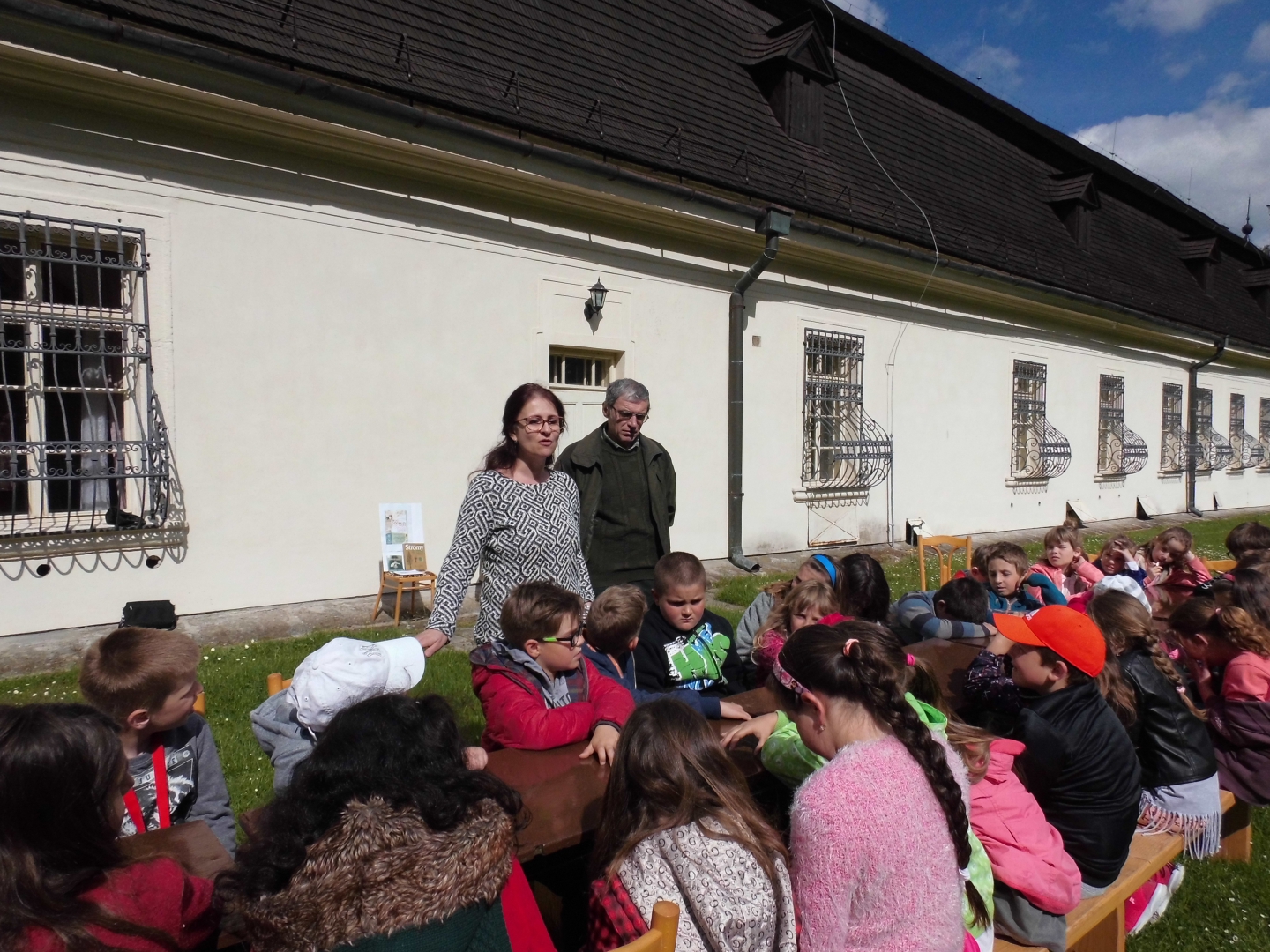 Viete z kúska kôry alebo z jedného listu povedať, z ktorého stromu to je? Poznáte strom, ktorého listy, kým sú mladunké, môžete zjesť? Poznáte tajomstvá lesa? Viete ako šuštia stromy? Viete ako dlho rastie strom do vašej výšky? My už áno. Teda, nevieme všetko, ale odpovedať vám na niektoré z týchto otázok vieme. Vieme to preto, že pre nás, žiakov prvého stupňa našej základnej školy, si Poľovnícke múzeum tu, vo Svätom Antone, pripravilo akciu s názvom "Les ukrytý v knihe". Ujo lesník nás povodil po parku, poukazoval niektoré stromy, prezradil nejaké to tajomstvo o lese, zvieratách. Potom si tety z múzea pripravili pre nás pracovné listy, v ktorých sme určovali z akého stromu je list či halúzka, písali slovenské porekadlá a príslovia spojené s lesom a stromami. Bolo to veľmi zaujímavé. A hlavne - boli sme vonku a všetko sme sa učili priamo v parku. Všetko sme videli na vlastné oči, mohli si to chytiť, ovoňať...a tak sa učí oveľa ľahšie a lepšie. Bolo nám, napriek tomu, že nám bolo trošku chladno, super. Dúfame, že takéto zaujímavé aktivity nás čakajú aj v budúcom školskom roku. A možno tie nasledujúce budú ešte krajšie, zaujímavejšie. Nuž, uvidíme... Takáčová