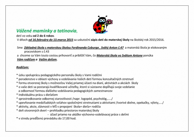 OFICIÁLNA STRÁNKA ZÁKLADNEJ ŠKOLY S MATERSKOU ŠKOLOU FERDINANDA COBURGA, Svätý Anton 47