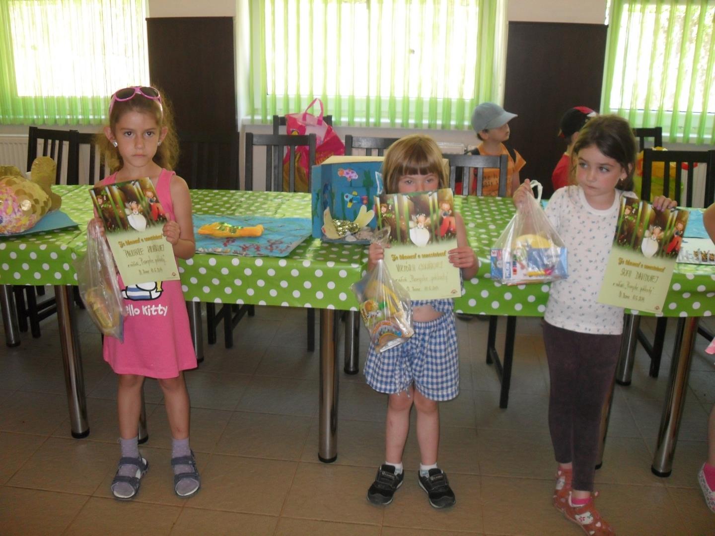 Dňa 23. 06. sa naše sovičky a usilovné včeličky vybrali hľadať do parku Coburgov poklad. Akciu v rámci projektu KomPrax pripravili žiačky deviateho ročníka ZŠ s MŠ vo Svätom Antone. Pri hľadaní pokladu naše deti plnili na jednotlivých stanovištiach nasledovné úlohy : hádali hádanky s tematikou lesných zvierat,hľadali ukryté motýle, hádzali šiškou do koša, triafali šípkou na cieľ, pomenovávali lesné zvieratá podľa obrázkov a kreslili zvieratká, chytali ryby , určovali kvety podľa atlasu a na koniec nás čakal v pekelnej jaskyni poklad.