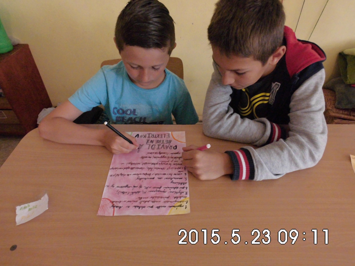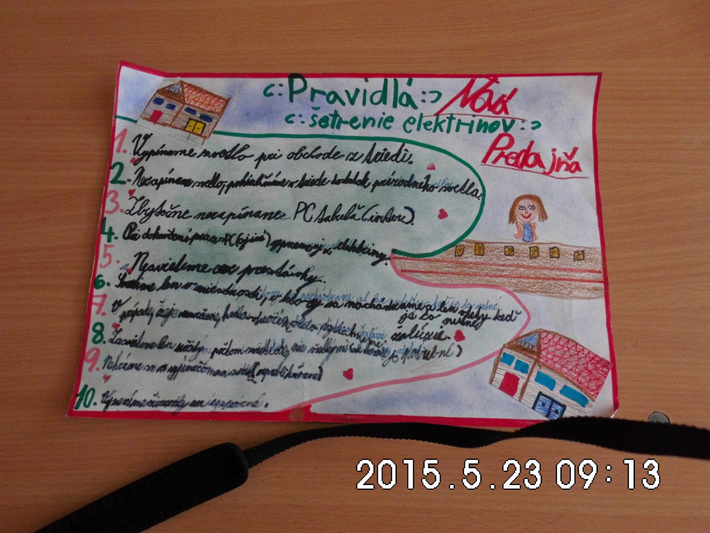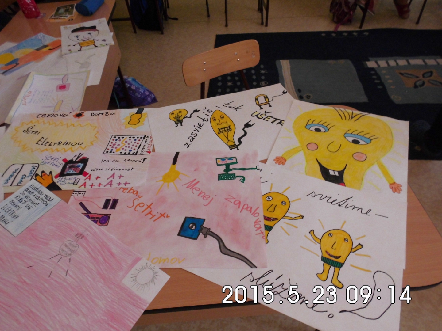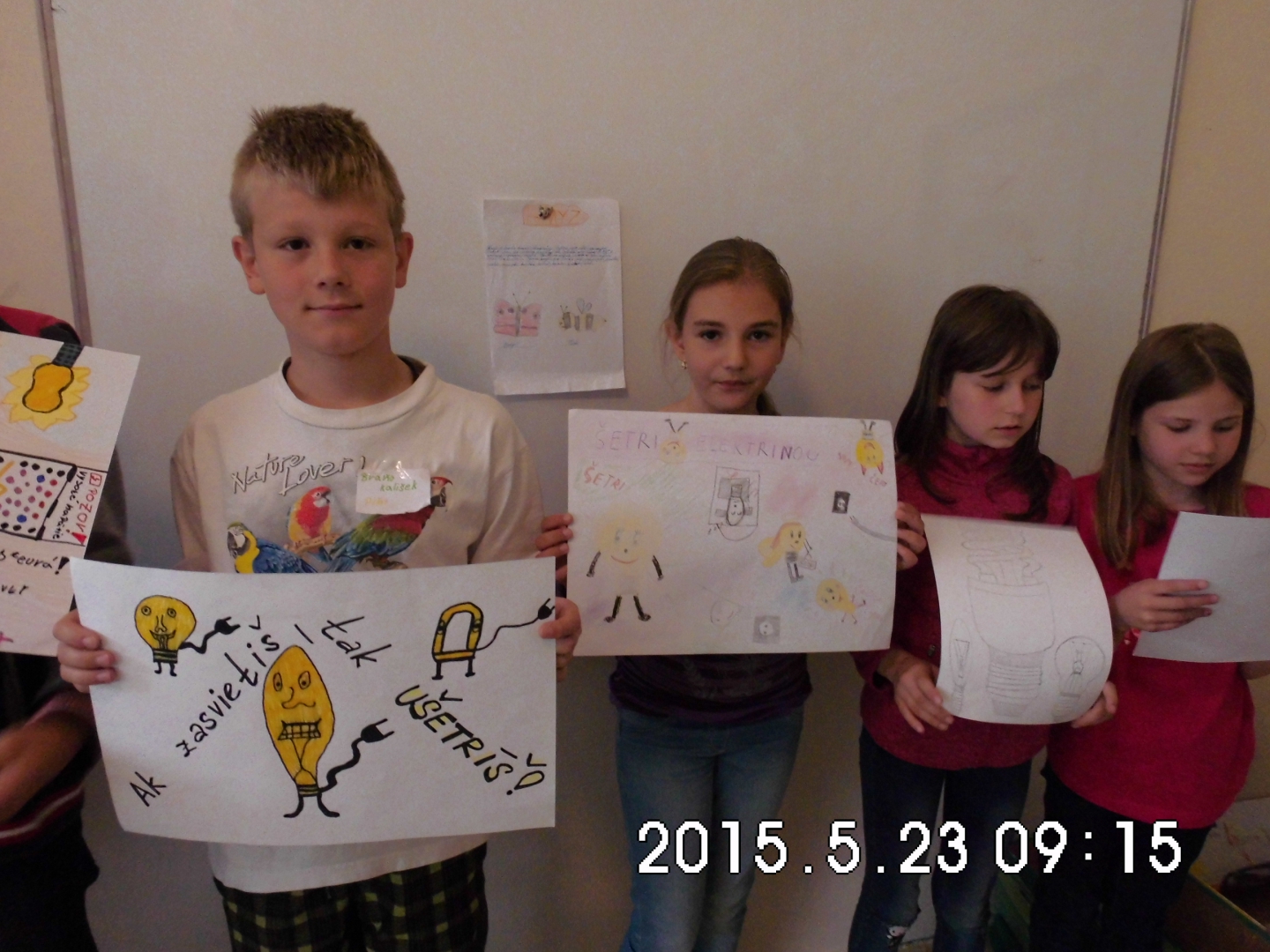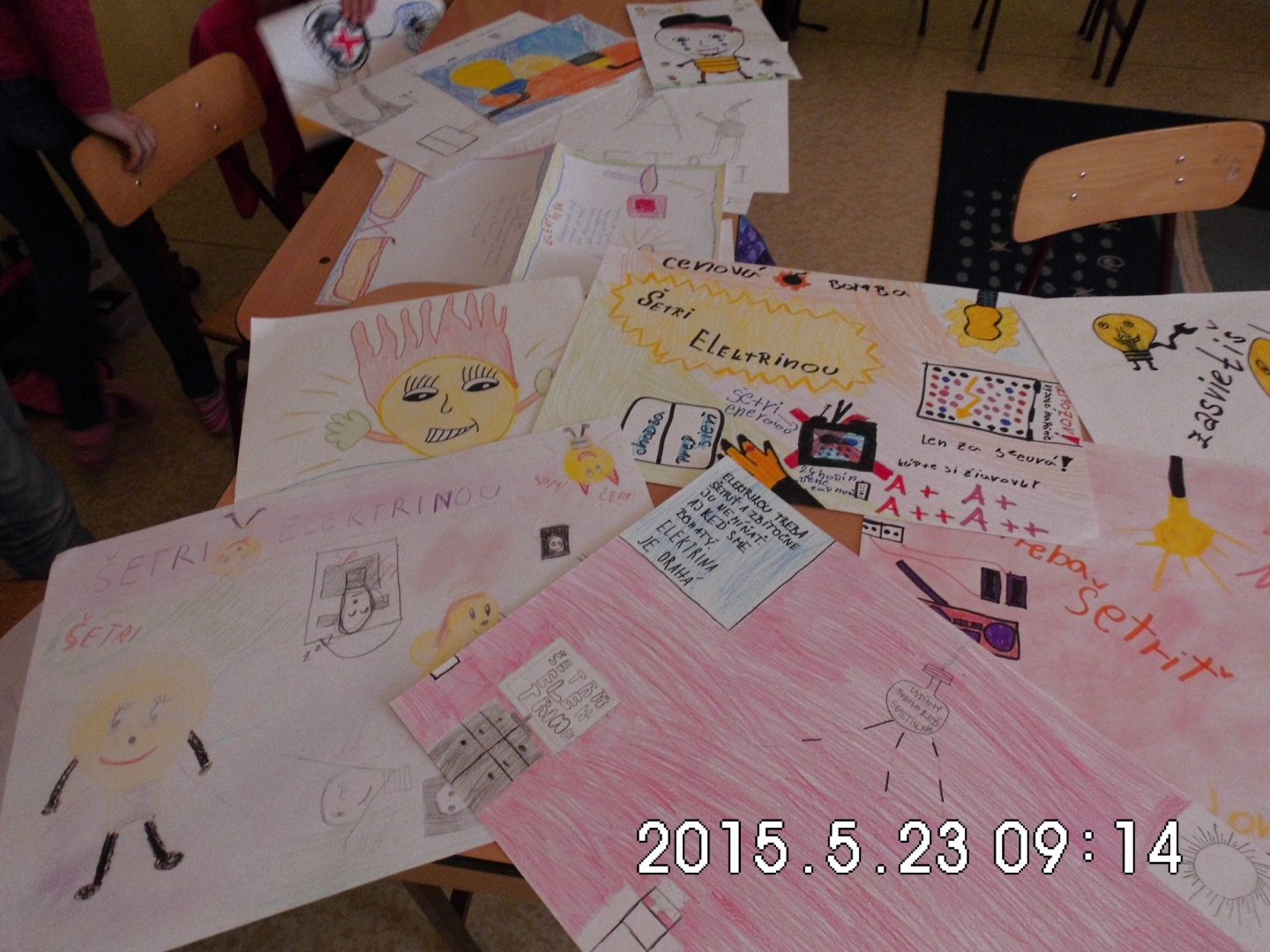 Žiaci prvého stupňa, pod vedením koordinátorky projektu Zelené škola a zodpovednej osoby za grant, robili „z každého rožku trošku“. Na výtvarnej výchove vymýšľali ako škriatkovia menia žiarovky za úsporné, kreslili piktogramy nad vypínače, na hodine slohu vymýšľali príbehy o tom, aký by bol svet, keby elektriny nebolo. Na prírodovede prezentovali, ako elektrina škodí životnému prostrediu a rozmýšľali, ako našej prírode pomôcť a zároveň elektrinu využívať. Spoločne vypravovali 10 bodov, ktoré by mali našej škole pomôcť šetriť elektrickou energiou a zároveň tak aspoň trochu ochrániť našu krásnu prírodu. Šetrenie elektrickej energie zhrnuté v základných bodoch aj ilustrovali. Využijeme ich tak, že do každej triedy v škole, ale aj v materskej škole, tieto body vyvesíme a budeme veriť, že ich ostatní žiaci, aj zamestnanci, budú dodržiavať.