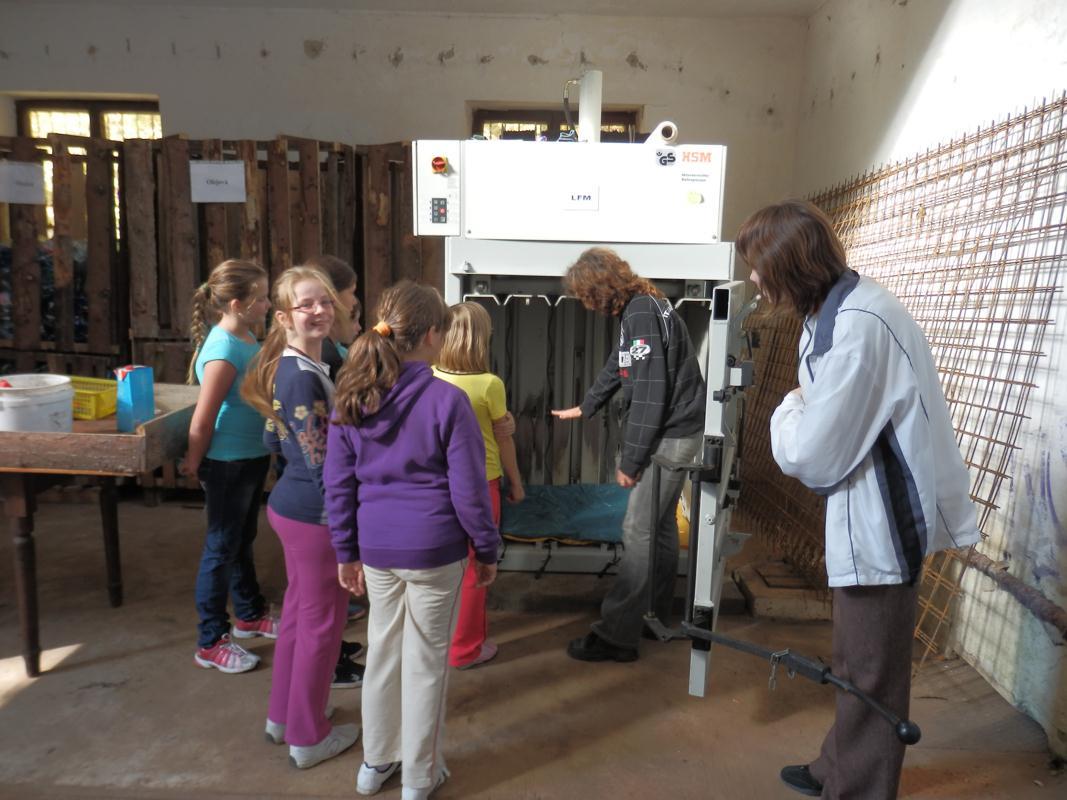 Dňa 23.októbra 2012 sme sa v rámci hodiny telesnej výchovy vybrali spoznávať bližšie okolie našej obce. Bol krásny slnečný deň. Turistika do Račna sa dala zvládnuť, cestou sme sa porozprávali aj pofotili. V Račne nás čakala p. Plentová Ľ., ktorá nás privítala a vysvetlila nám význam a dôležitosť zberného dvora pre našu obec. Oboznámila nás so spôsobom zberu a likvidácie odpadu – tzv. pet-fliaš. Žiaci si prezreli lisovaciu linku a bol im vysvetlený aj systém jej fungovania.