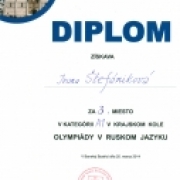 Víťazka školského kola, ktoré je na úrovni okresného kola olympiády v ruskom jazyku, Ivana Štefániková obsadila na krajskom kole krásne tretie miesto. Blahoželáme.